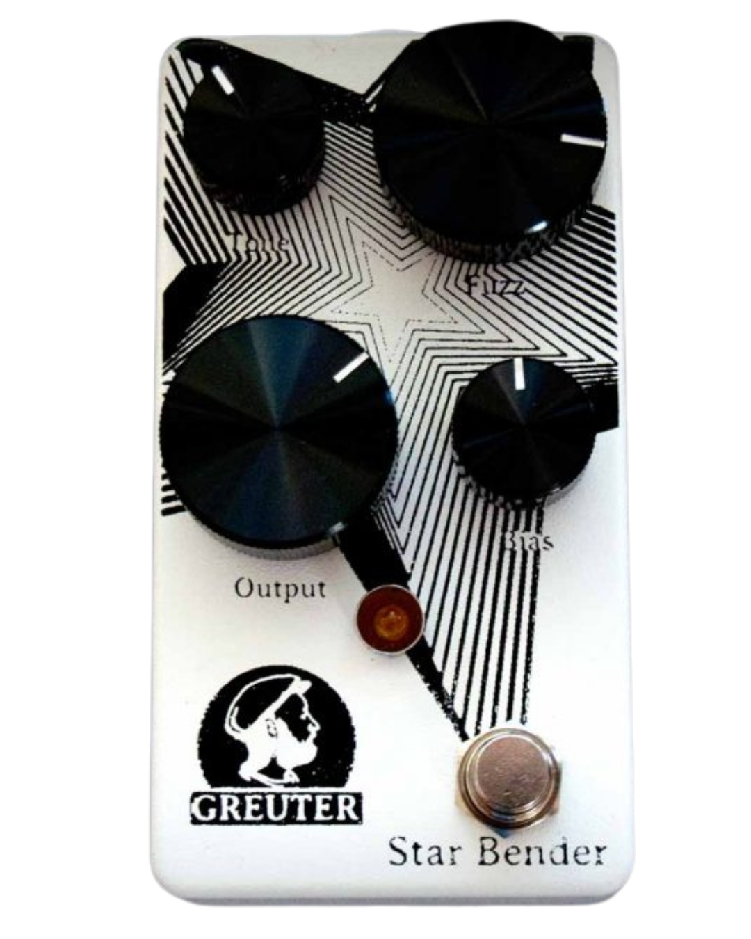Der Greuter Star Bender liefert vielseitige Tone Bender MK3/MK4 Fuzz-Sounds, reagiert auf das Gitarren-Volumen und bietet flexible Bias- und Tone-Steuerung für ein breites Klangspektrum.