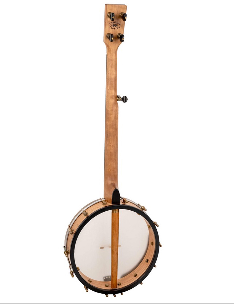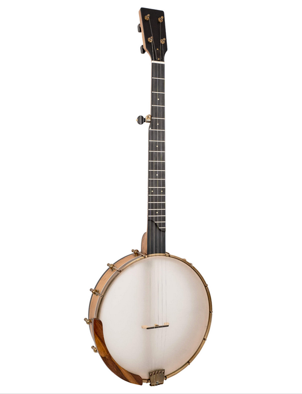 Hochwertiges Open-Back-Banjo mit 12″-Kessel, Renaissance Head und Cyclone-Tunern. Handgefertigt aus amerikanischer Kirsche, mit Paddle-Headstock, ebonitverstärktem Tonring und schnellem Halsprofil für präzises Spielgefühl.