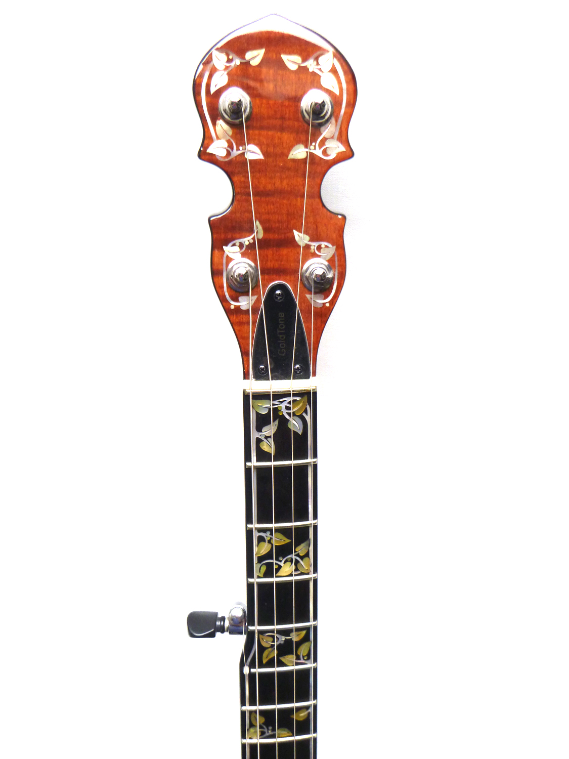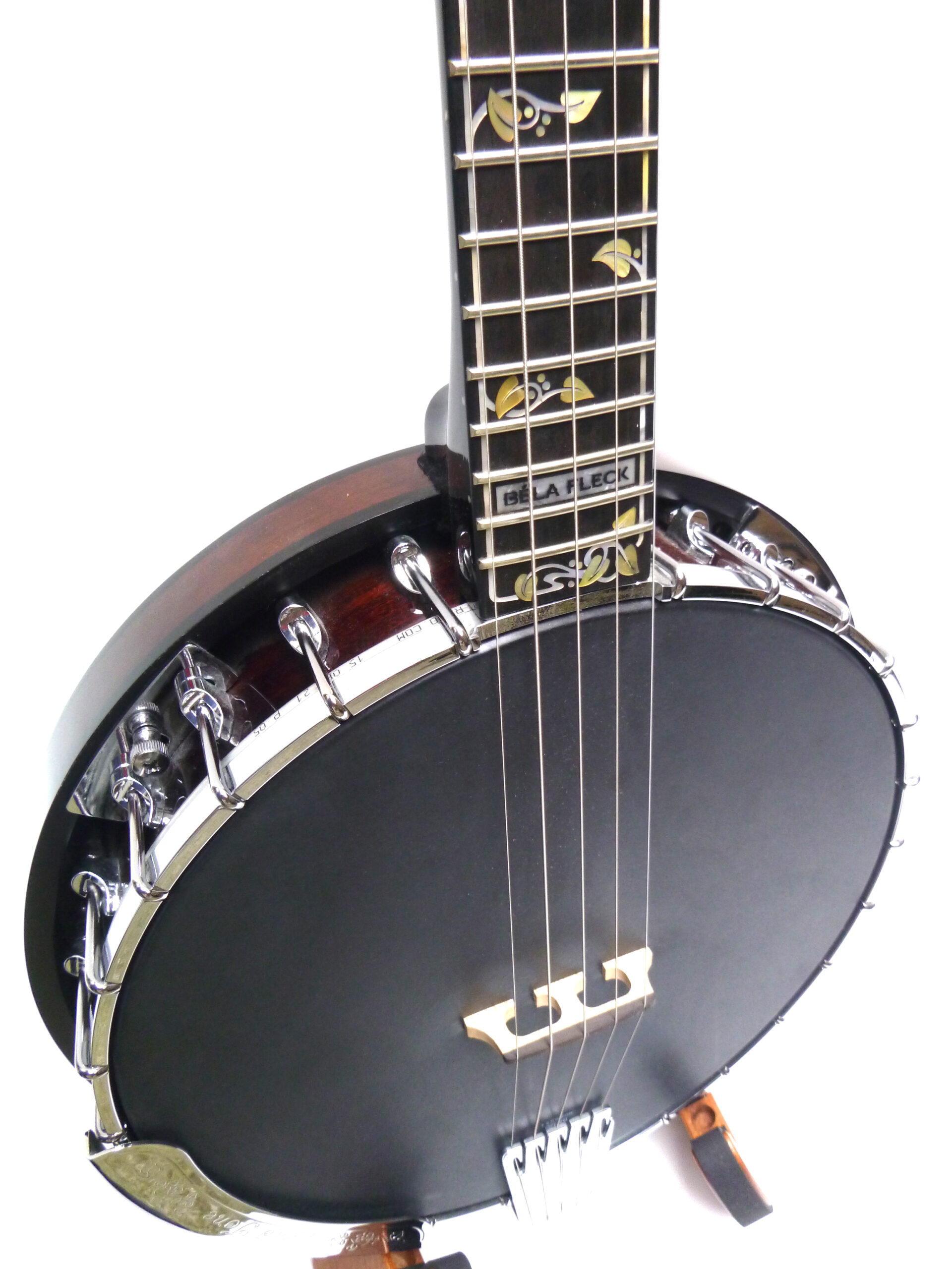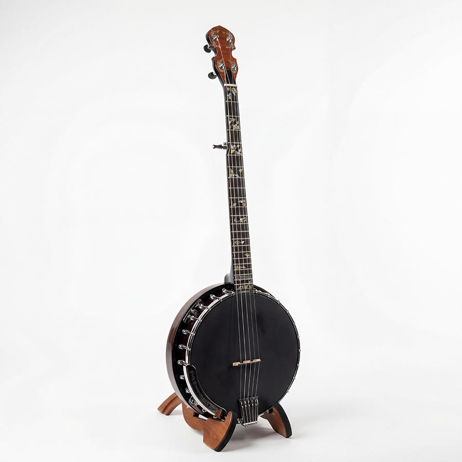 Baritone Tuning (cGCEG), Ahorn Dunkel Gebeizt, Ebenholzgriffbrett mit aufwändigen Einlagen, 12″-Kessel mit Bronze Tonring, OHK