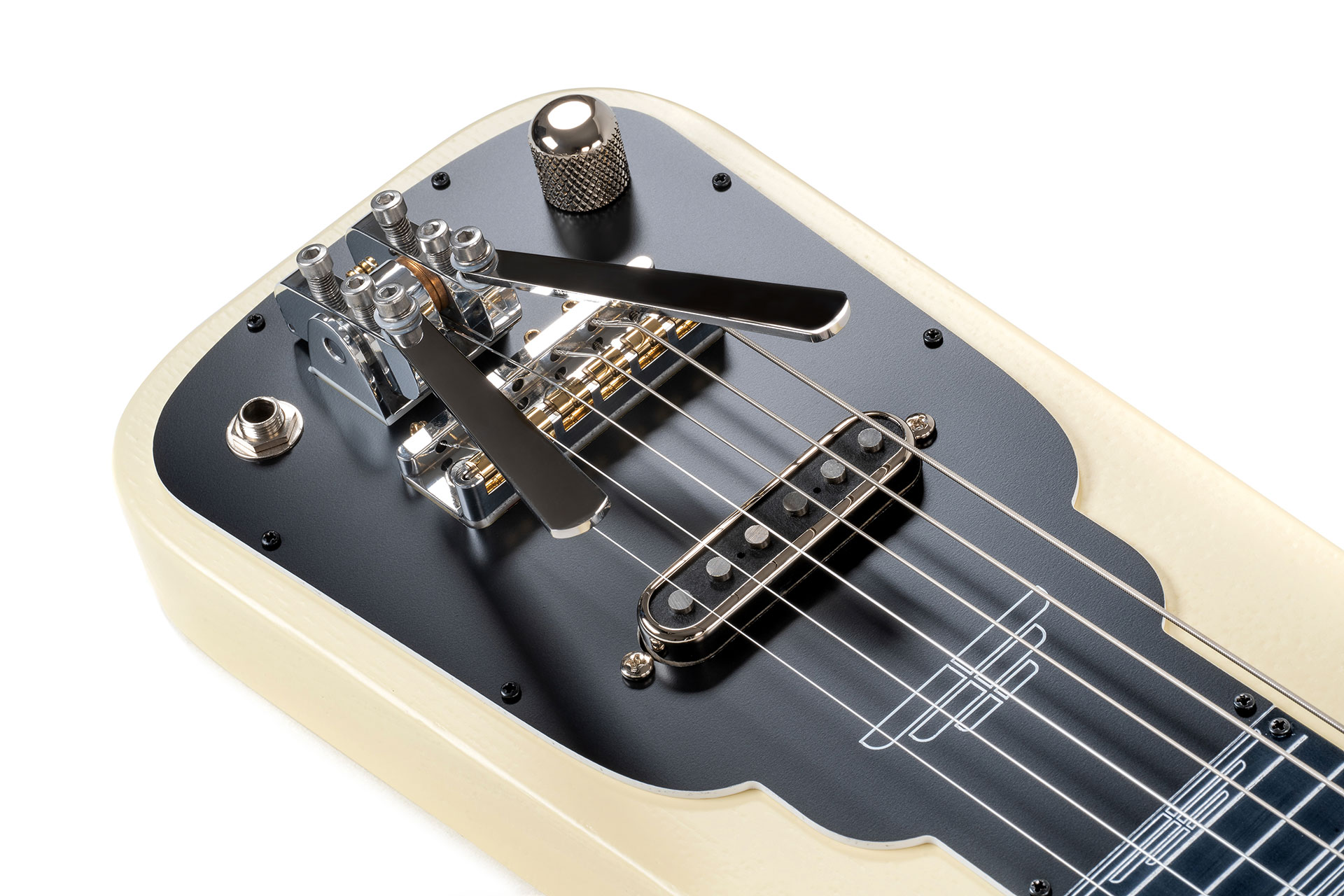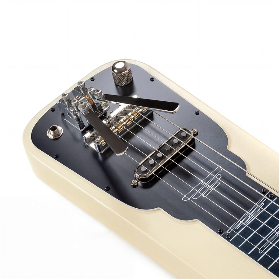 Kompakte, handgefertigte Lap Steel in Olympic White mit 24″-Mensur. Ausgestattet mit Certano Palm Bender, Roller Nut & Bridge für maximale Spielkontrolle. Inklusive Bag und Tone Bar – ideal für Bühne, Studio oder unterwegs.