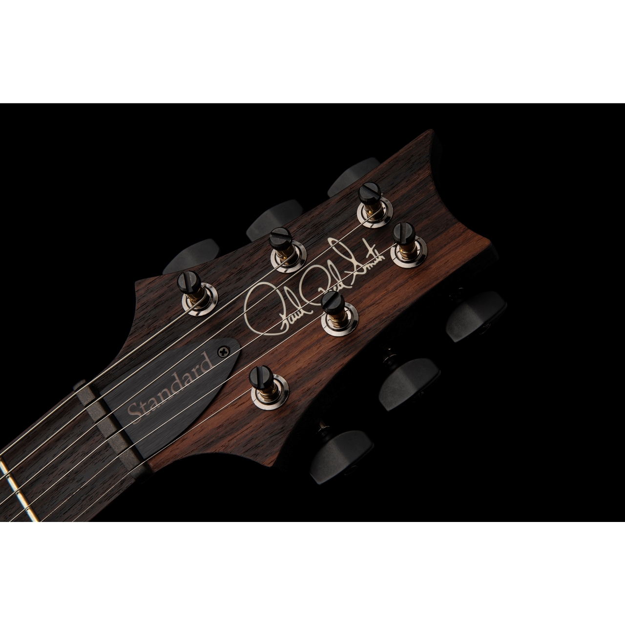 Die PRS Standard 24 Satin Pearl Black kombiniert Vollmahagoni-Korpus mit PRS DMO-Pickups.