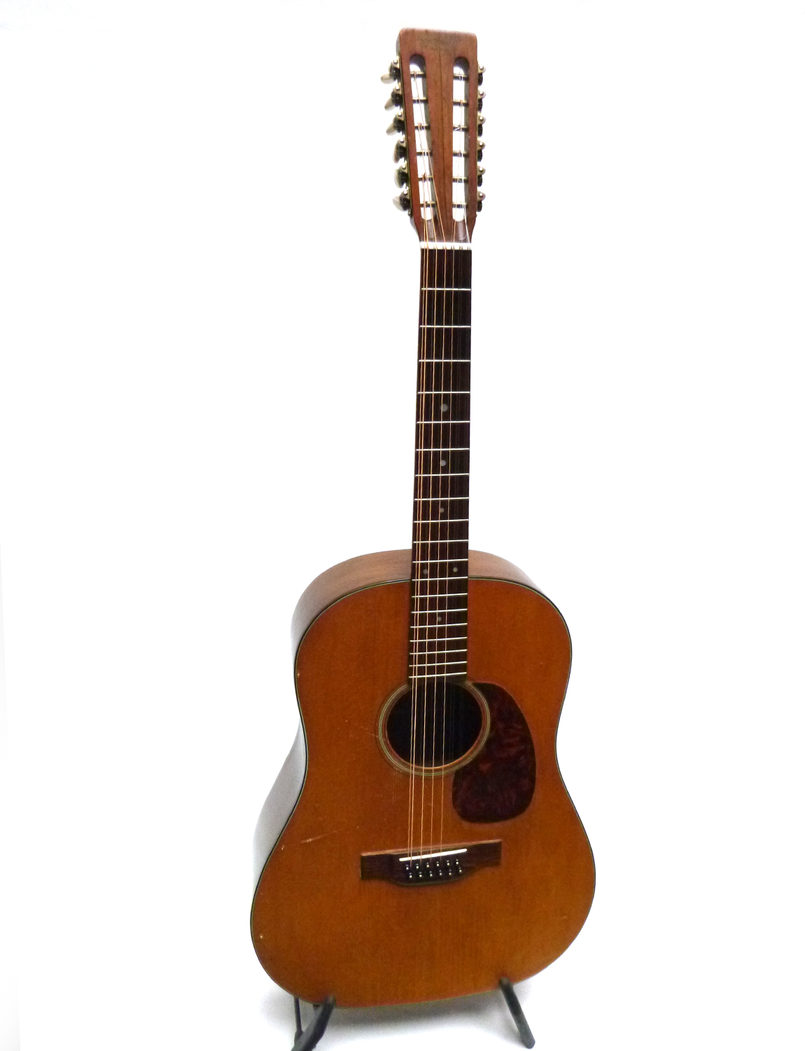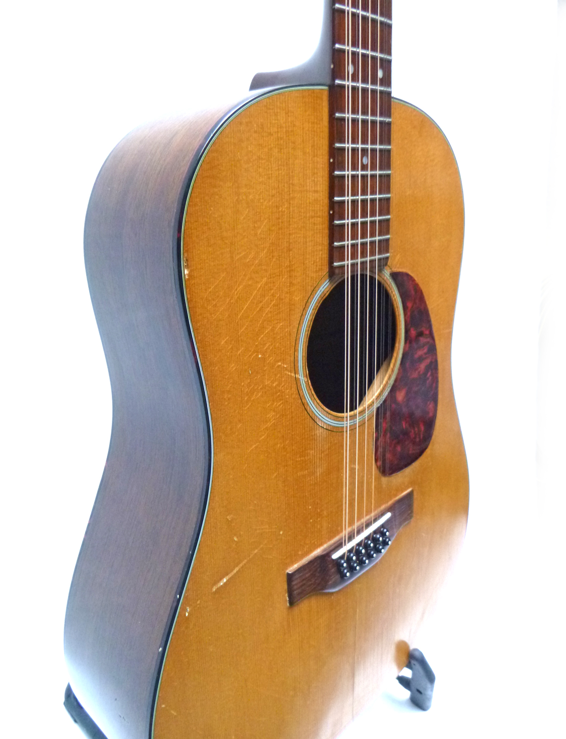 Bj. 1965, Sehr guter Zustand, einige Kratzer und kleine Kerben, aber gut spielbar, Fichtendecke, Zargen und Boden Mahagoni, Schildpattfarbiges Binding und Pickguard, Längerer Korpus ab 12.Bund, Gerundete Schultern, McIntyre Pickup, Neuerer Martin Koffer, Wurde auf der CD “Aloha from Züri West” gespielt