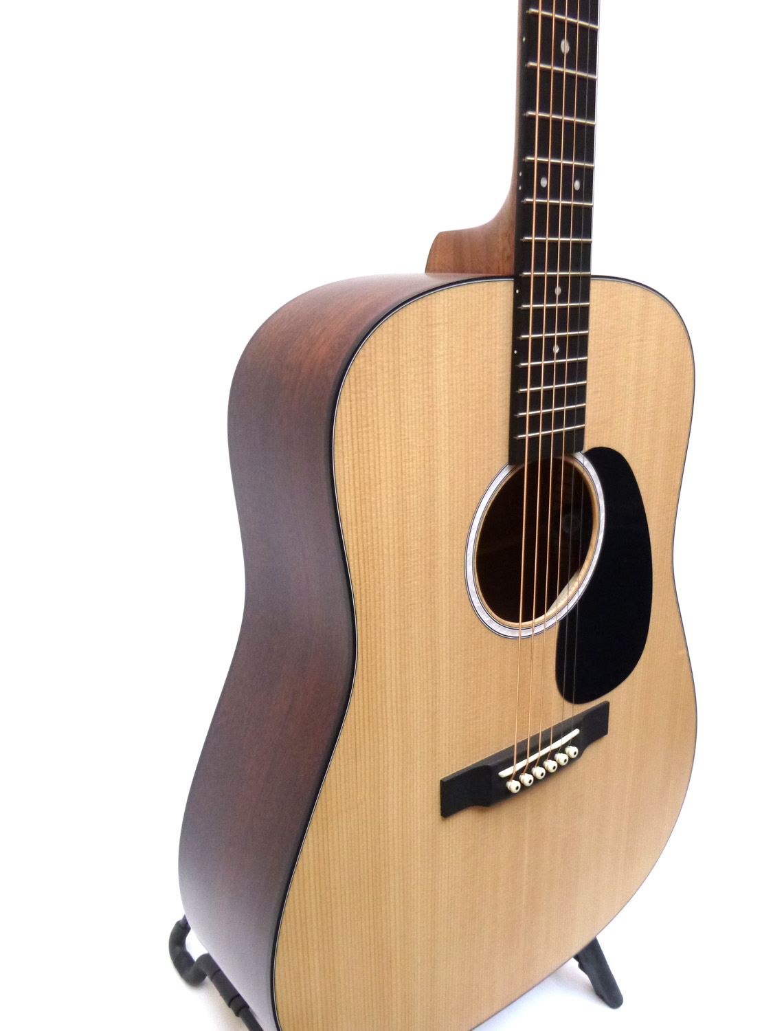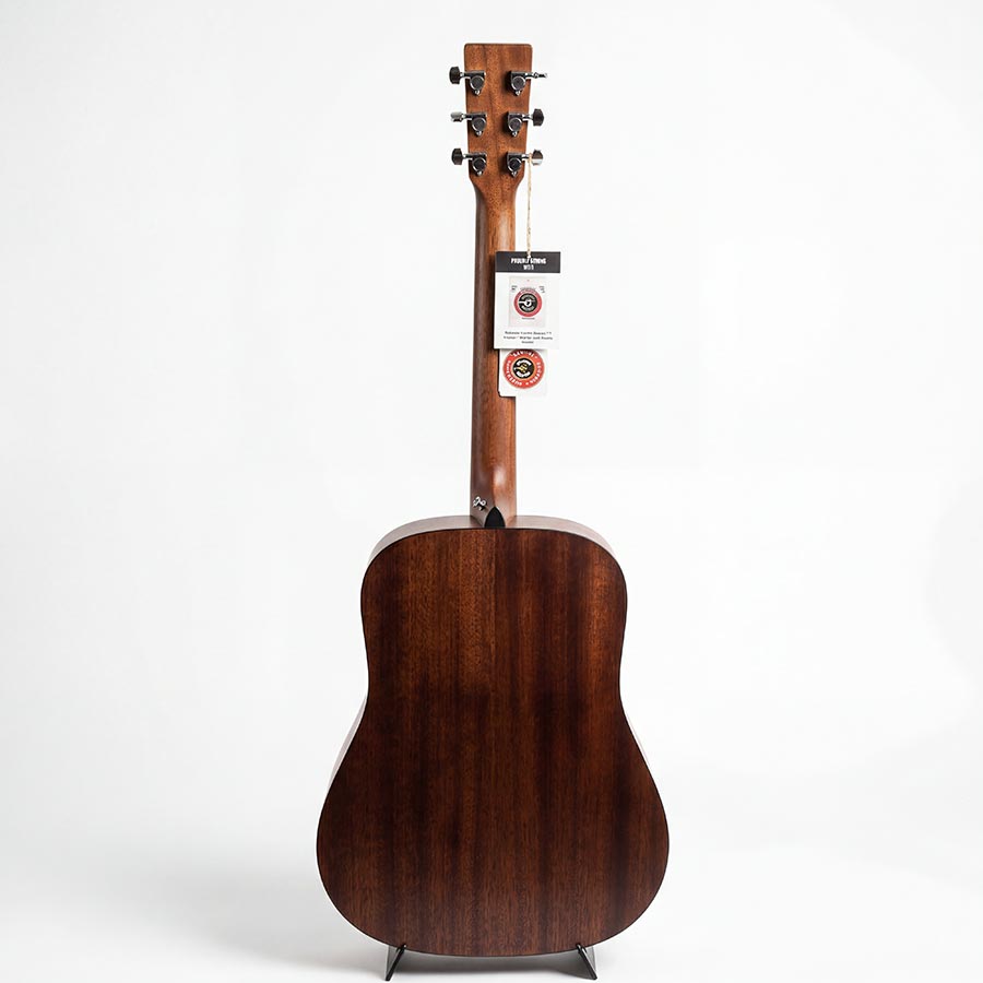Sitka-Fichtendecke massiv, Zargen und Boden Sapele massiv, Matt, Perlmuttrosette, Fishman MX-T Pickup und Preamp, eingebauter Soundhole-Tuner, OGB