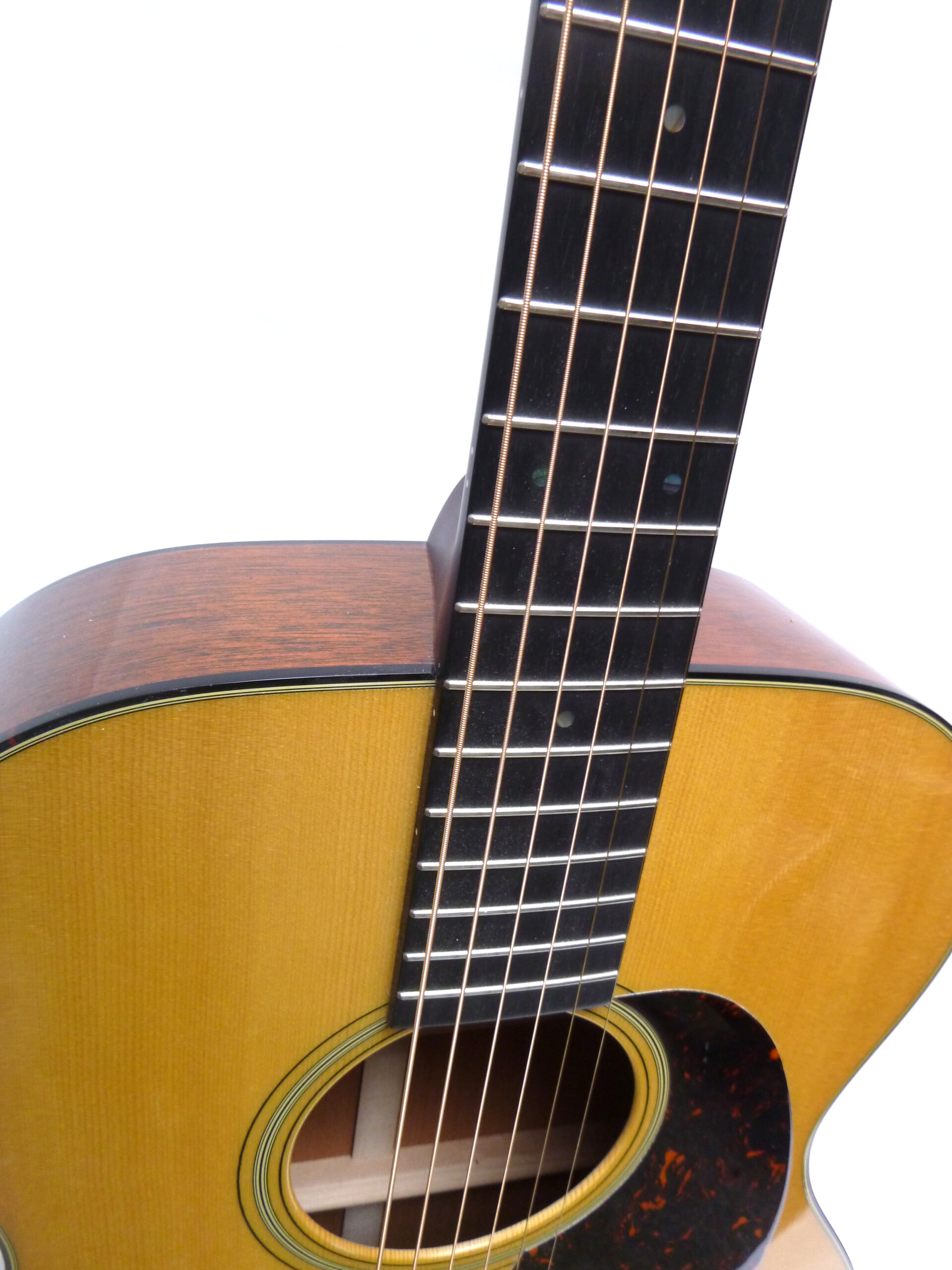 Die Martin 000-18 Modern Deluxe kombiniert eine VTS-behandelte Fichtendecke mit Mahagonikorpus, Ebenholzsteg und innovativen Materialien. Mit ihrem ausgewogenen Klang und spielerfreundlichem Halsprofil ist sie eine erstklassige Wahl für anspruchsvolle Gitarristen.
