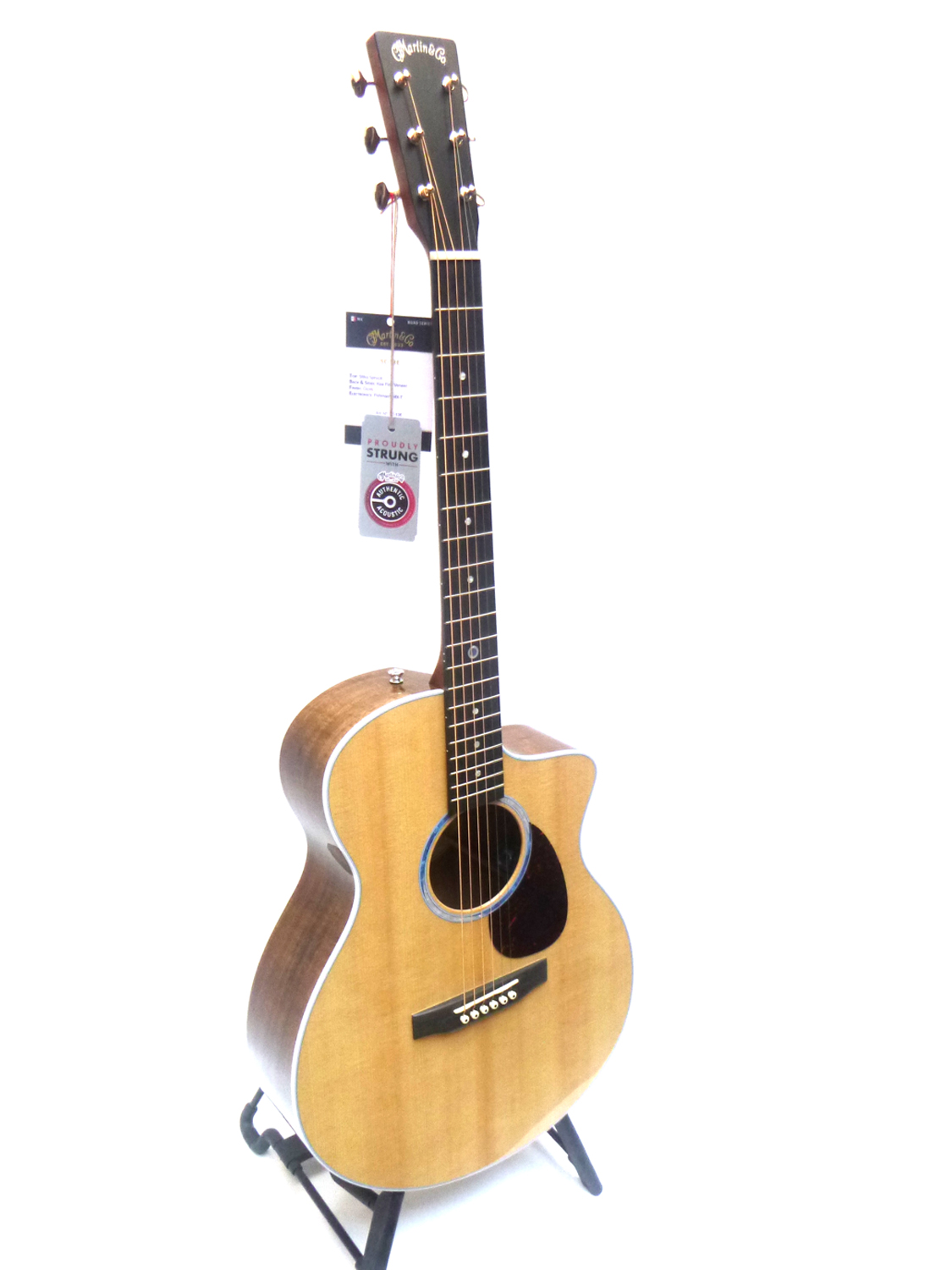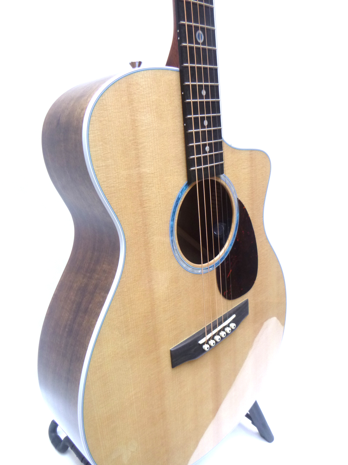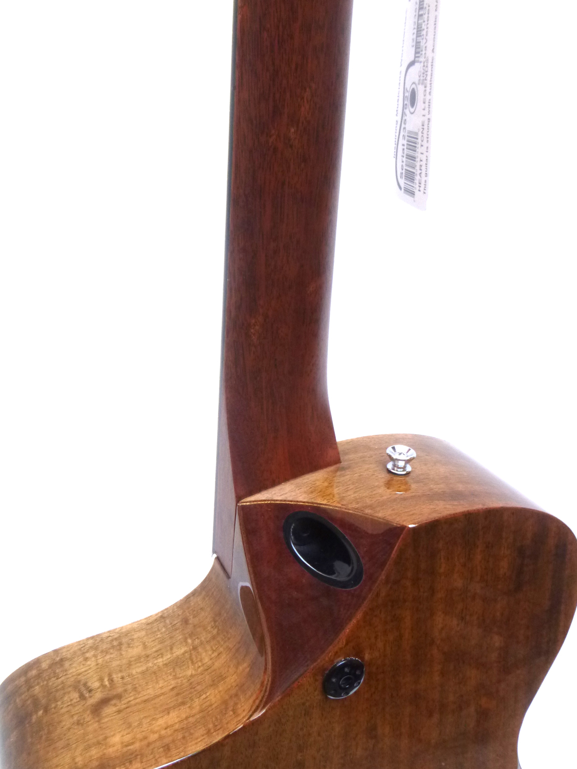 Sitka-Fichtendecke massiv, Boden und Zargen Koa gesperrt, Hochglanz lackiert, Neuartige Verbalkung von Decke und Boden, Cutaway, Fishman MX-T-Elektronik mit Stimmgerät, OGB