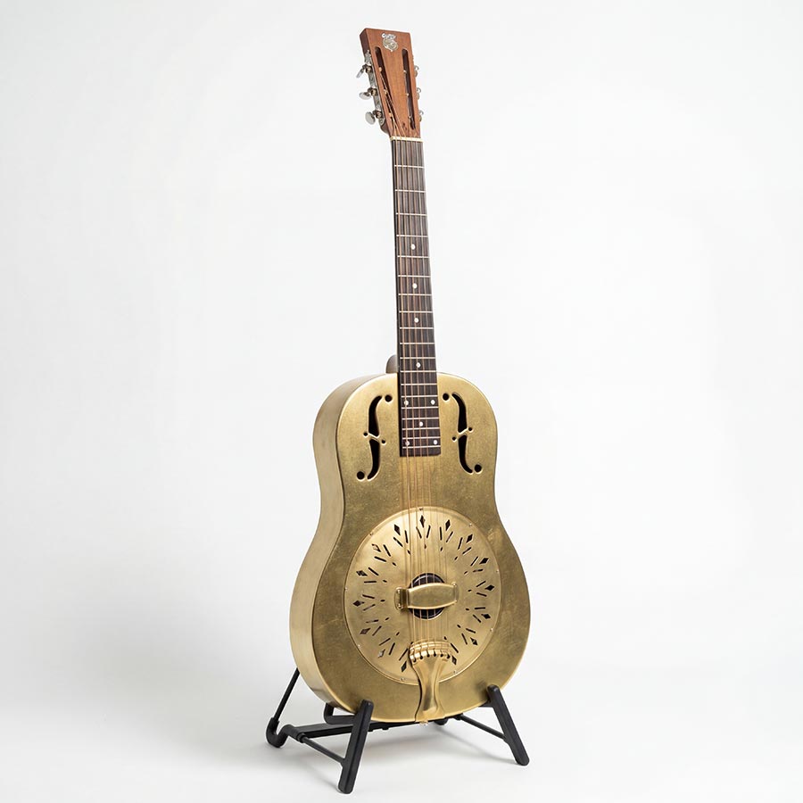 Messingkorpus roh, Mahagonihals mit Ebenholzgriffbrett, OHK