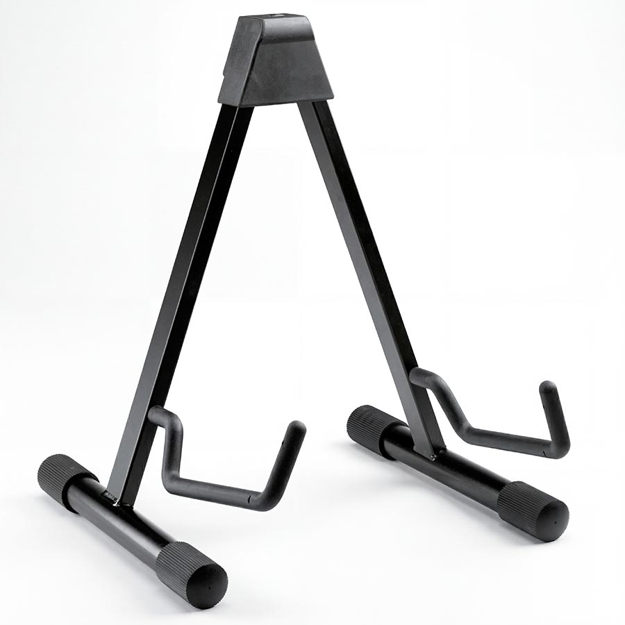 17541 A-Gitarrenständer Niedriger Gitarrenständer für akustische Gitarren. Durch ein Druckknopfsystem kann der Ständer in der Breite schnell und einfach eingestellt und zusammengelegt werden. Die Auflageflächen sind komplett mit einem hochwertigen Kunststoff-Schutzüberzug beschichtet.