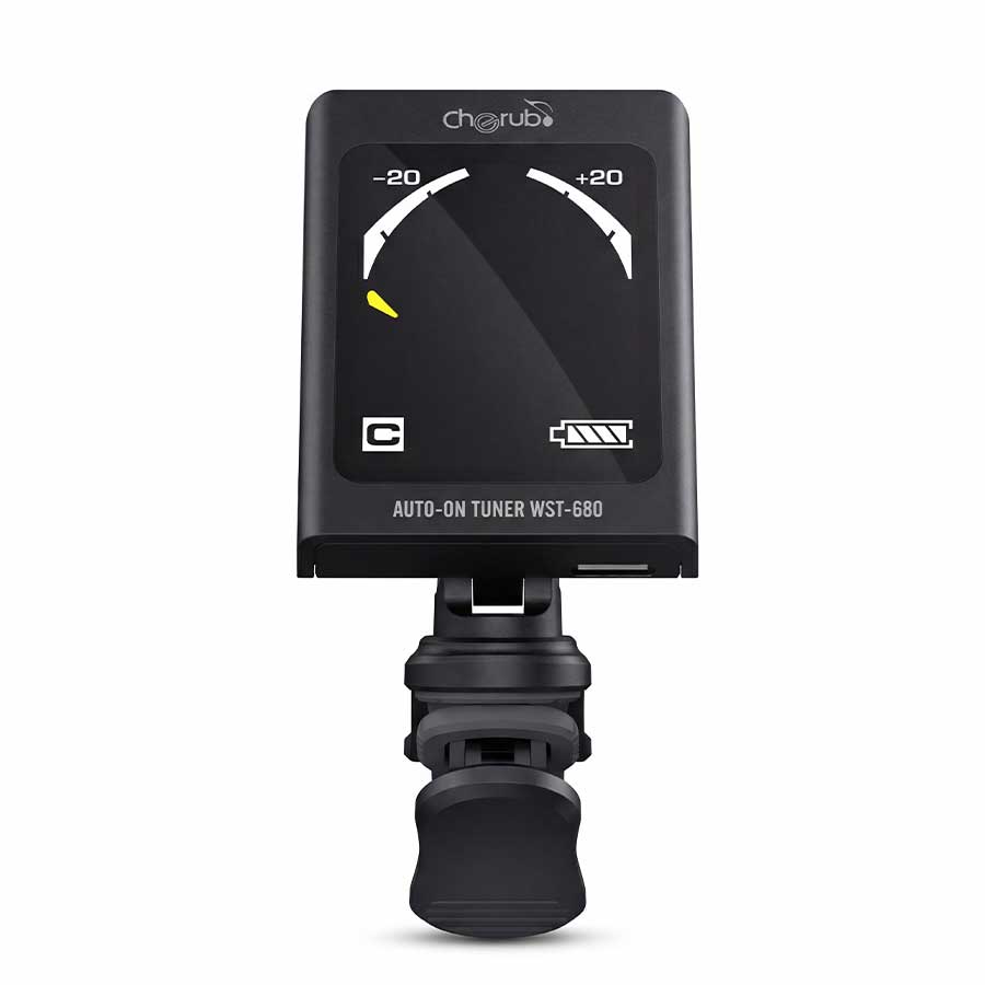 Wiederaufladbarer Clip-Tuner mit Farbdisplay und Auto-On/Off-Funktion. Geeignet für Gitarre, Bass, Ukulele und chromatisches Stimmen. Hohe Präzision, USB-Ladefunktion und kompakte Bauform.