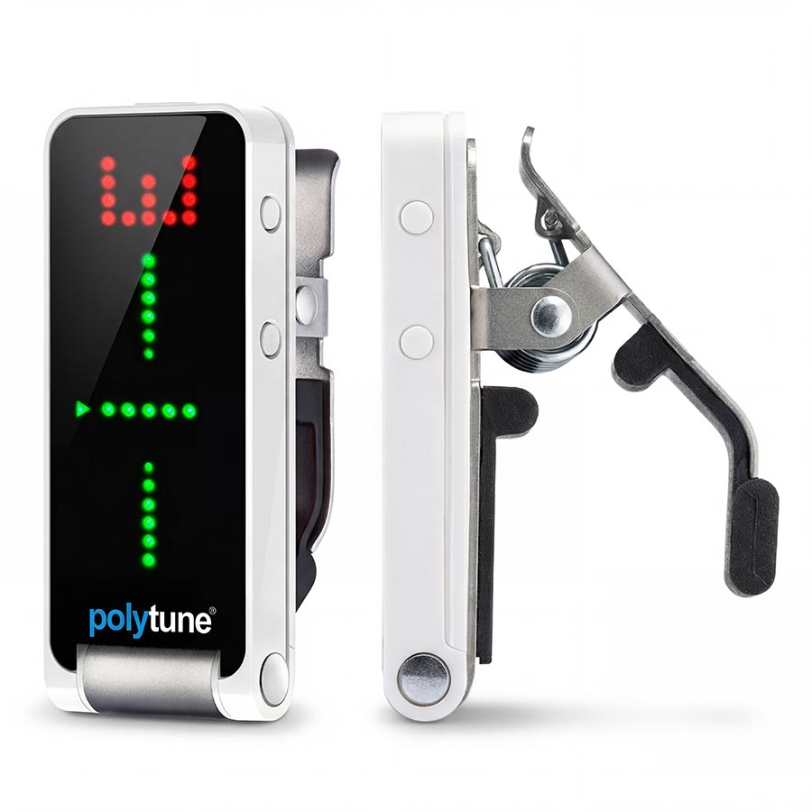 mit PolyTune-Technologie alle 6 Saiten gleichzeitig stimmen Strobe-Tuner mit ±0,02 Cent Stimmgenauigkeit extrem helles und gut ablesbares Display adaptives Display sorgt unabhängig von der Position des PolyTune Clip für optimale Ablesbarkeit hochwertiger robuster Edelstahl-Clip auch für Flat Tunings und Kapodaster geeignet Abmessungen (B x T x H): 25 x 60 x 28 mm Gewicht: 32 g Stromversorgung über eine CR2032-Knopfzelle (Batterie im Lieferumfang enthalten) Farbe: Weiß